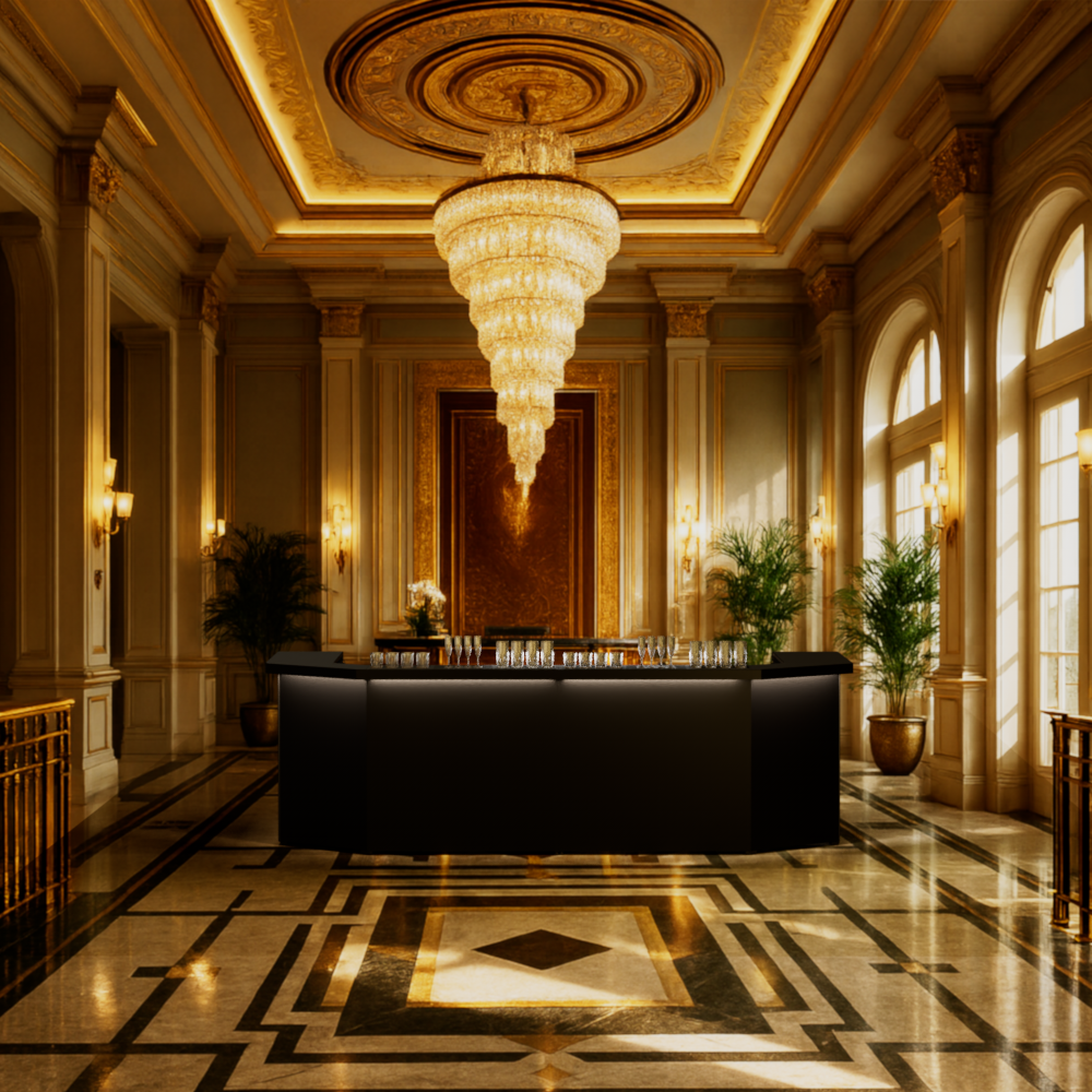Med Bartisan får du en bar, der skiller sig ud med et genkendeligt udtryk, luksuriøst finish, indbygget lys og en stabil konstruktion, der fungerer på alle underlag. Skift branding efter behov, og lad dit brand få fokus.